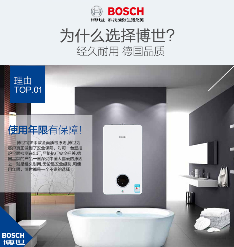 博世壁掛爐效率高; 低排放、環保; 帶時間編程的控制器,靈活、方便; 微電腦控制、LED顯示; 低能耗、節能效果顯著; 多重安全保護功能、運行可靠; 室內溫控遙感技術,可實現遠程控制; 控制系統模塊化。